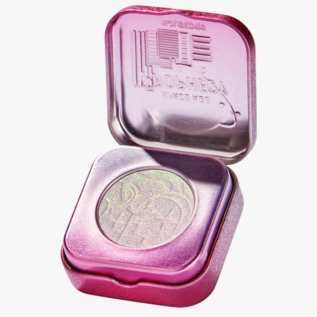 O mais novo membro da família Space Age Highlighter, o iluminador multicromático Space Age Prophecy, está em uma categoria à parte. Com uma fórmula extraordinariamente suave e requintadamente fácil de esfumar, este iluminador fantasmagórico alterna fluidamente entre um espectro de quatro tons diferentes, mas consegue se misturar perfeitamente à pele para um acabamento natural luxuoso.